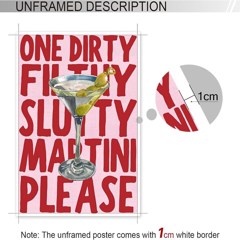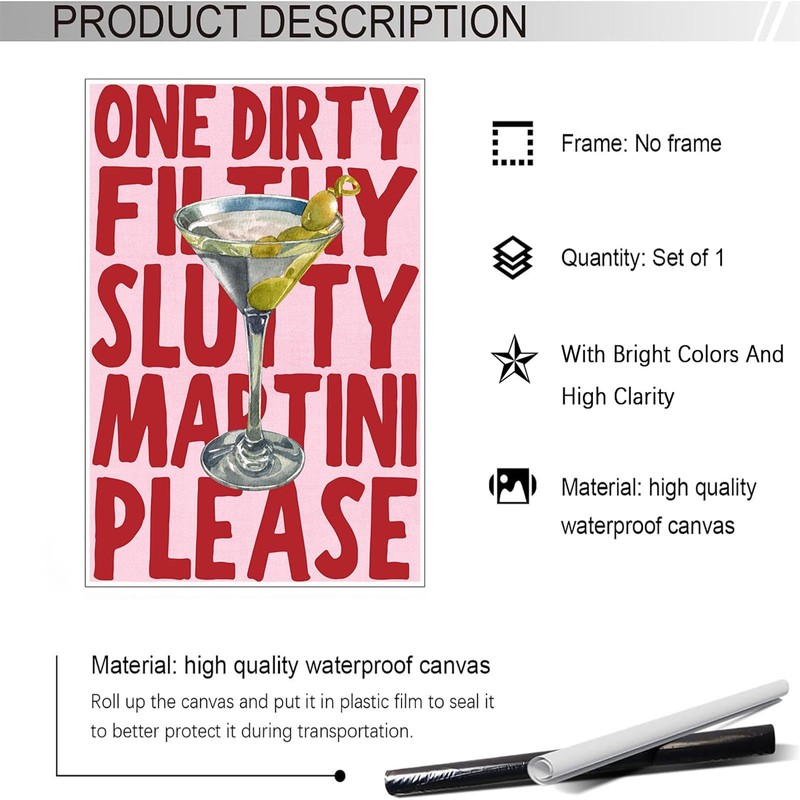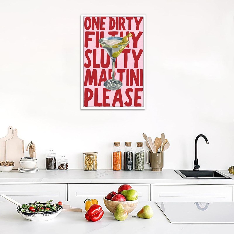 Trendy Dirty Filthy Sluity Martini Please Posters Funky Cocktail Drinks Canvas Wall Art Preppy Aesthetic Prints Painting For Home Bedroom Dorm Bar Cart Wall Decor 12x16in Unframed