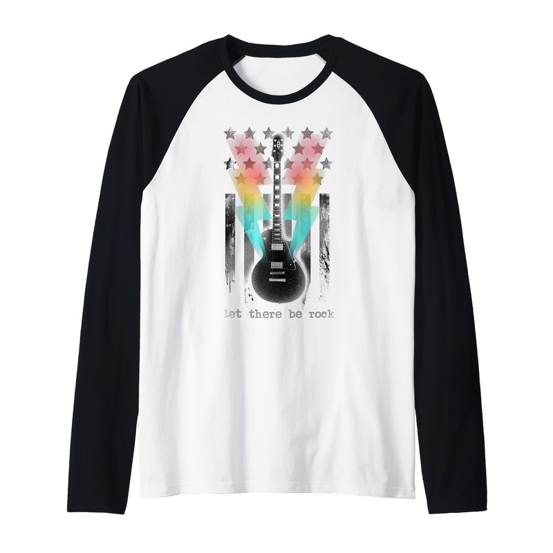 Trendy Let There Be Rock American Flag Lightning Poster Raglan Baseball Tee