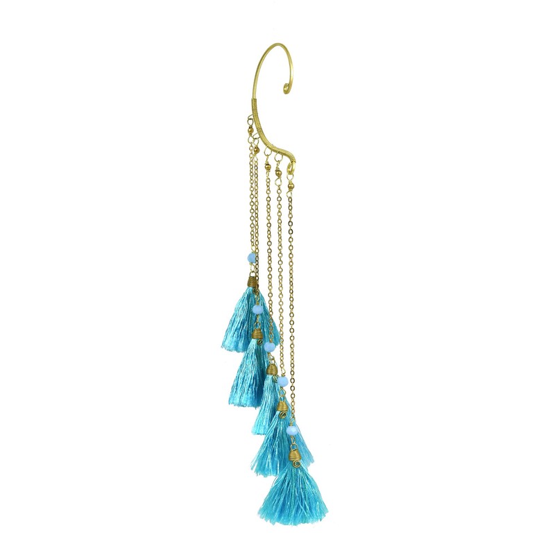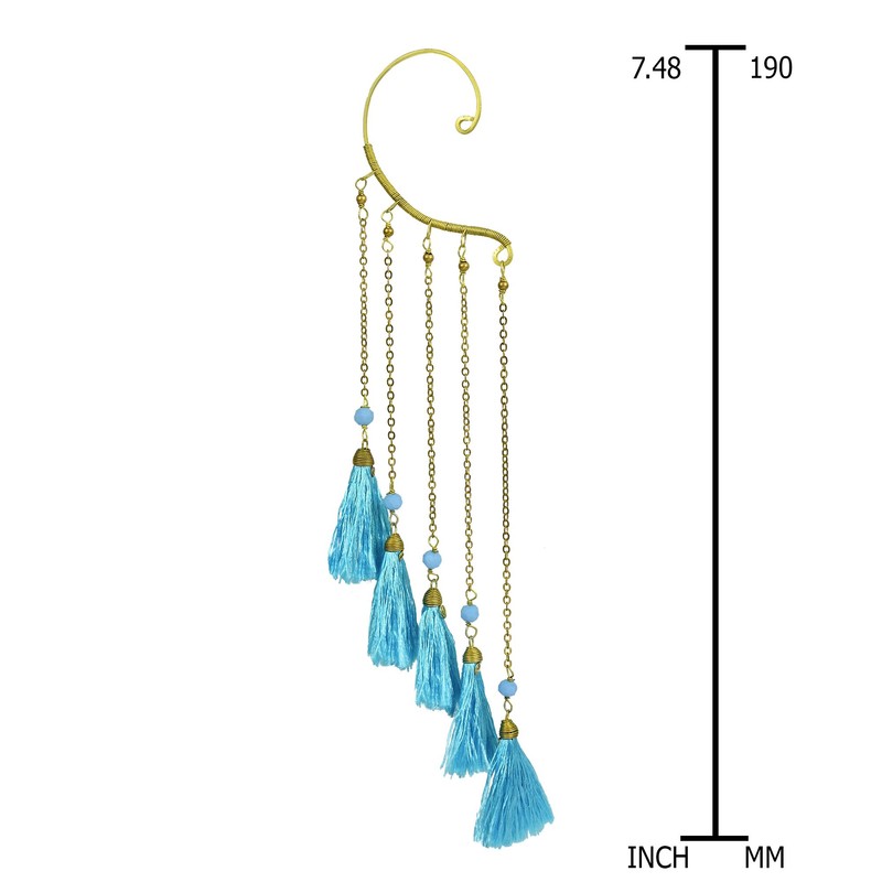 Trendy Multi Sky Blue Tassel Brass Chain Statement Ear Cuff Earrings