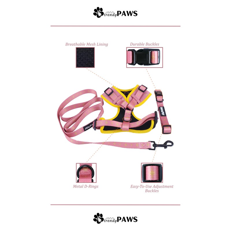 Trendy Paws Small Dog Harness Set (Rose Gold, Large)