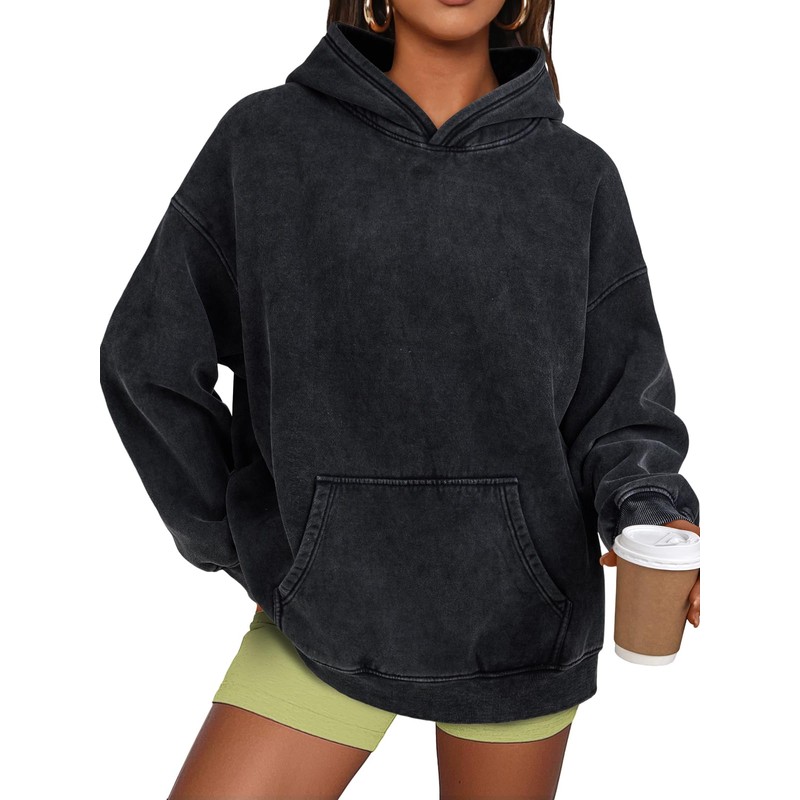 Trendy Queen Oversized Hoodies for Women Acid Wash Sweatshirt Cute Pullover Fall Winter Long Sleeve Shirts Black S
