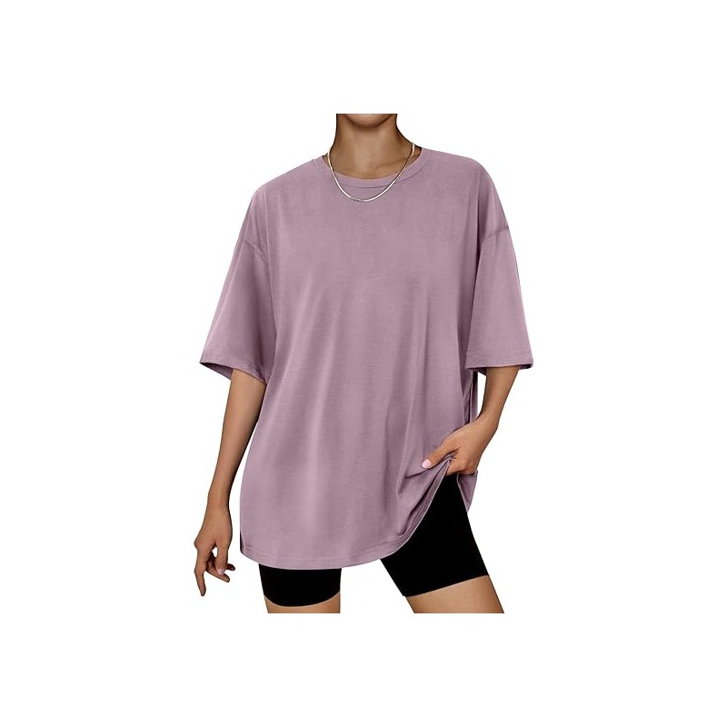 - Design:Short sleeve shirts,round neck,loose fit tops,oversized casual blouse,solid color never out of style,easy to match with every style.