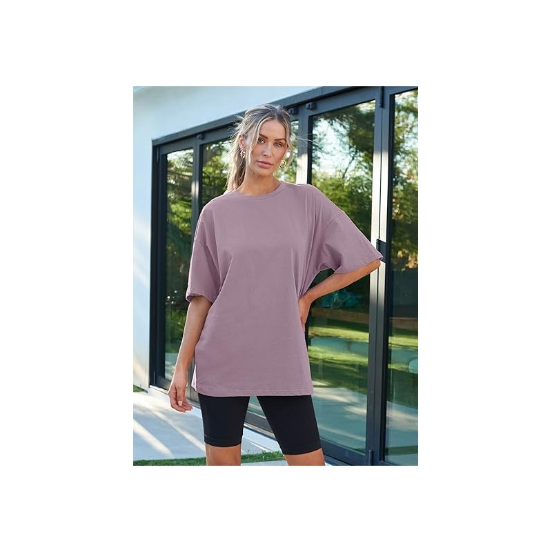 - Design:Short sleeve shirts,round neck,loose fit tops,oversized casual blouse,solid color never out of style,easy to match with every style.