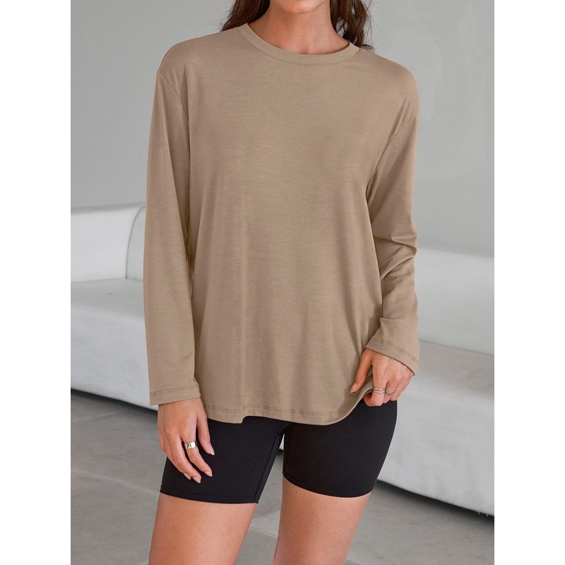 Trendy Queen Womens Oversized Long Sleeve T Shirts 2025 Basic Crewneck Tee Fall Tops Casual Workout Y2K Clothes Khaki 2XL