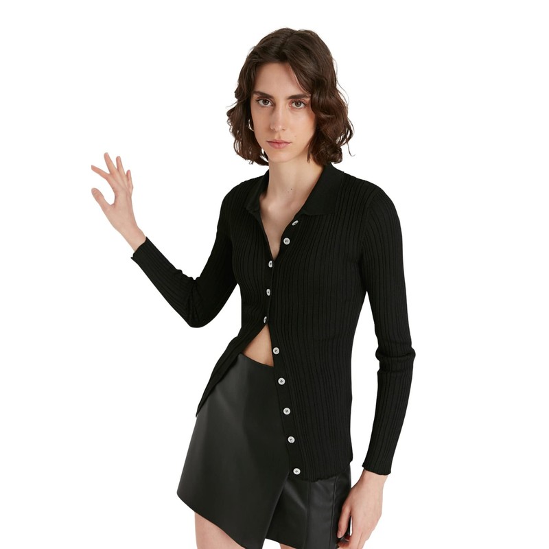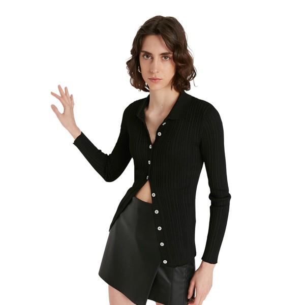 TRENDYOL Ladies Standard Size Turtleneck Cardigan Sweater, black