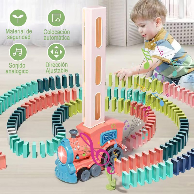 - 【REGALO IDEAL PARA NIÑOS】La función de apilamiento del tren domino es muy atractiva, especialmente porque también emite sonidos y luces, para que los niños puedan disfrutar de un rato divertido y entretenido lejos de la electrónica. Este tren de dominó es perfecto para Navidad, Acción de Gracias, Pascua, Día del Niño, Regalos de Graduación, Regalos de Cumpleaños para niños y niñas de años, ¡deje que sus hijos aprendan mientras se divierten!