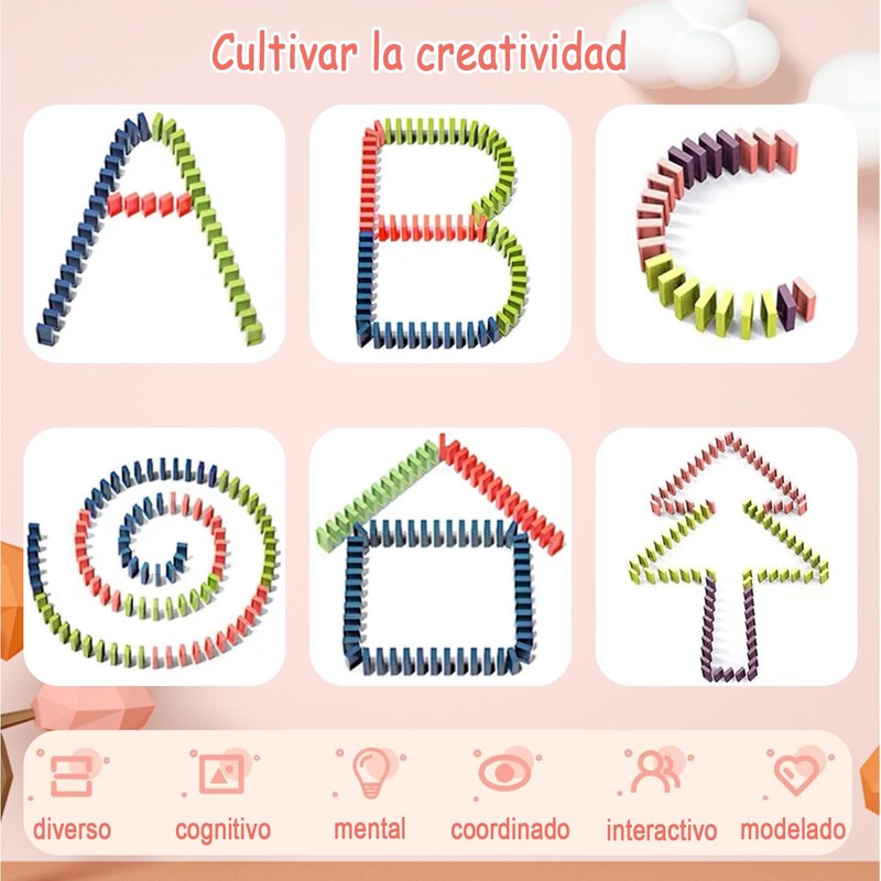 - 【JUGUETES CREATIVOS PARA DIVERTIRSE】Los bloques de dominó pueden atraer la atención de los niños y enseñarles a clasificar los colores. Los niños pueden utilizar los bloques de plástico de colores para construir sus propios patrones y diseños creativos. Los padres pueden enseñar a los niños a quitar las fichas de dominó cuando el tren está atascado para desarrollar la motricidad fina, la tolerancia a la frustración y la coordinación ojo-mano.