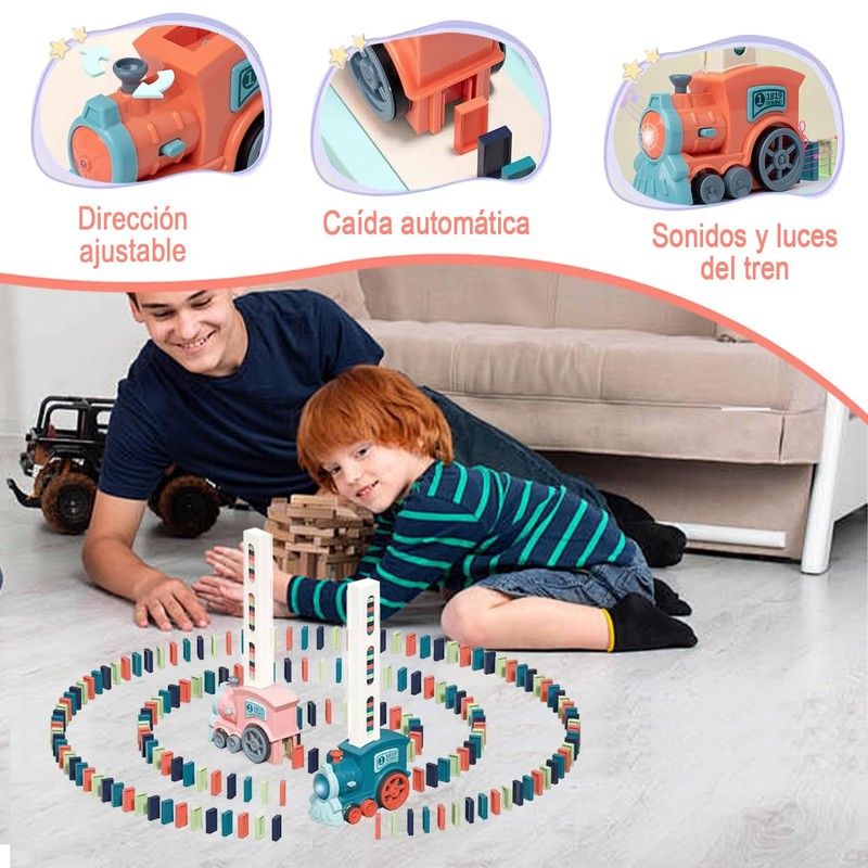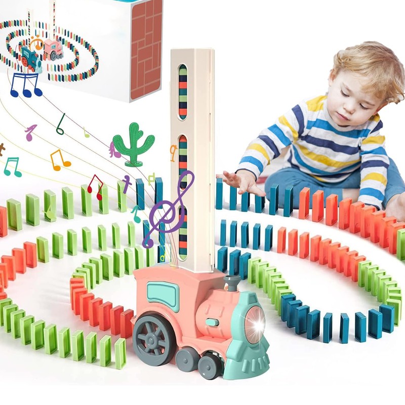 - 【REGALO IDEAL PARA NIÑOS】La función de apilamiento del tren domino es muy atractiva, especialmente porque también emite sonidos y luces, para que los niños puedan disfrutar de un rato divertido y entretenido lejos de la electrónica. Este tren de dominó es perfecto para Navidad, Acción de Gracias, Pascua, Día del Niño, Regalos de Graduación, Regalos de Cumpleaños para niños y niñas de años, ¡deje que sus hijos aprendan mientras se divierten!
