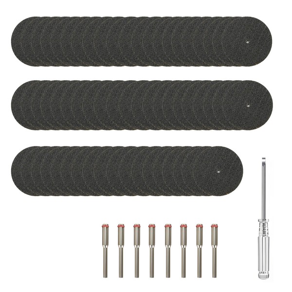 Trennscheiben Set für Dremel, 60 Stück Mini Sägeblatt Kreissägeblatt mit 8pcs 3mm Dorn und 1 Schraubendreher, Rotationswerkzeug Zubehör Schneidräder für das Schneiden aller Arten von Metall, Edelstahl