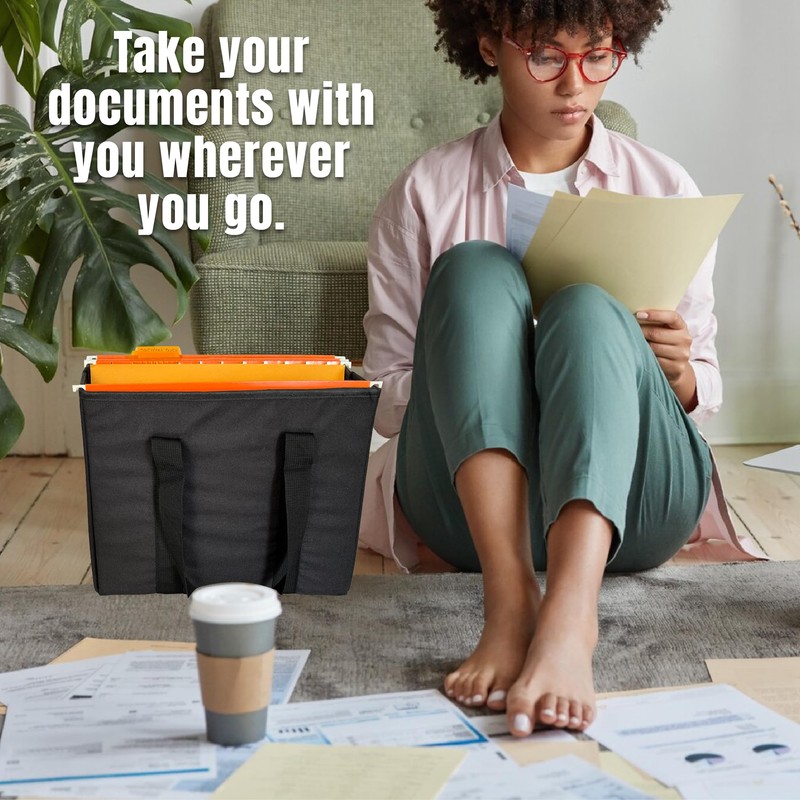 - Versatile and Portable Design: The Hanging File Box & Handy Business Tote is the perfect solution for both home and office use. Acting as a mobile filing cabinet, this organizer allows you to carry important documents and records wherever you go. Ideal for remote and hybrid work schedules, it accommodates all your essentials, ensuring seamless transitions between different work environments. This versatile design makes it easy to stay organized and productive, no matter where you are.