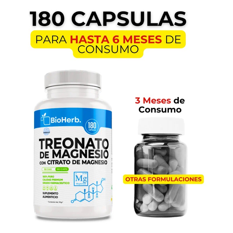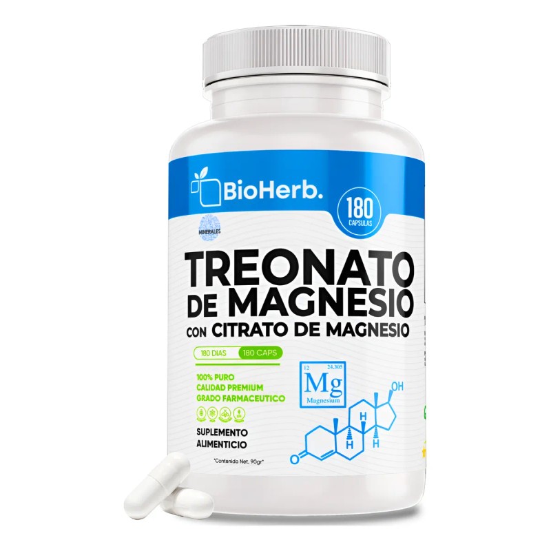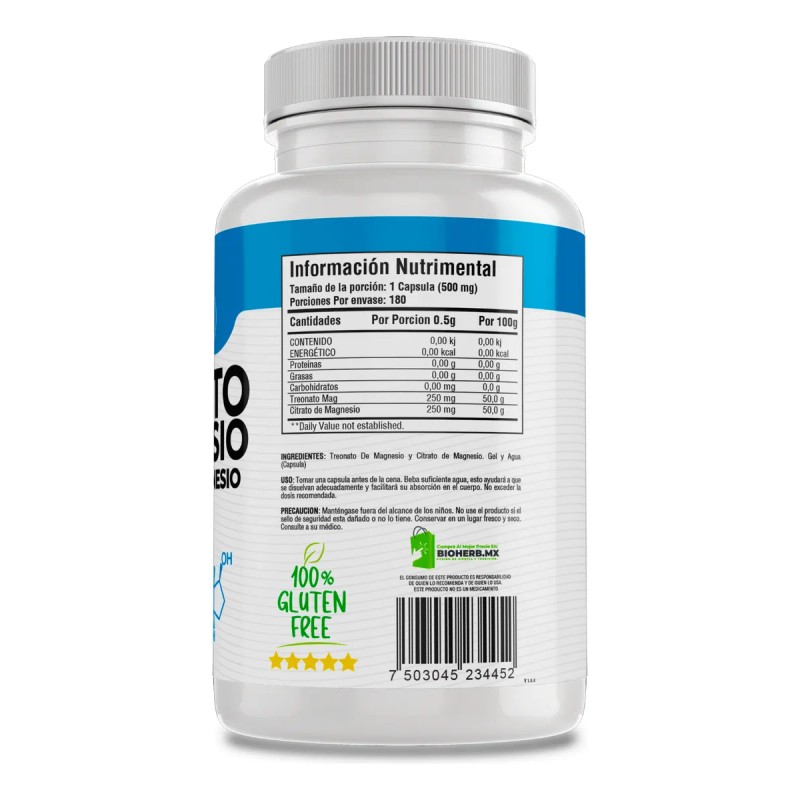 Treonato De Magnesio + Citrato De Magnesio 180 Capsulas Sin Sabor