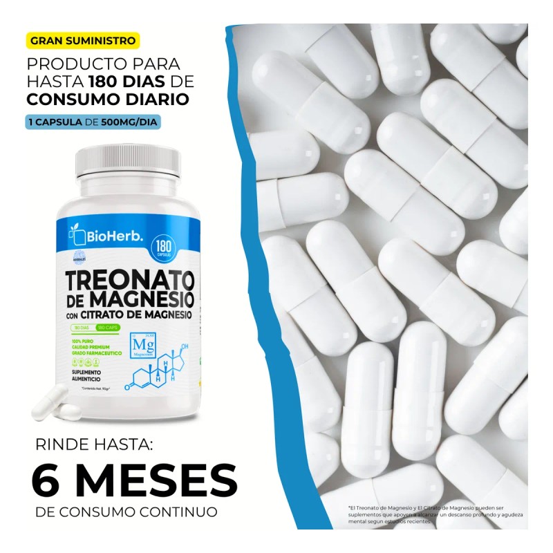 Cada cápsula, con un peso de 0.5 g, aporta beneficios esenciales que promueven el equilibrio y la vitalidad. El Treonato de Magnesio es conocido por sus propiedades para mejorar la función cognitiva y reducir el estrés, mientras que el Citrato de Magnesio es clave para la salud muscular y la regulación del sistema nervioso. Esta sinergia no solo favorece el rendimiento físico, sino también la salud mental, lo que la convierte en una excelente adición a la rutina diaria.