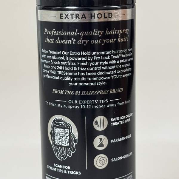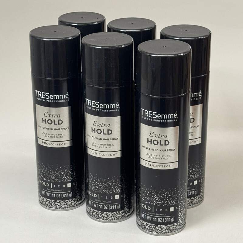 TRESEMME 6 PACK! Extra Hold Unscented Mist Hairspray Condition: New Color: Black Size: 11 oz (6 pack) PROFESSIONAL QUALITY: Our Ultra Fine Hairspray provides 24 hour flexible hold & touchable finish. LOCK IN MOISTURE & LOCK OUT FRIZZ: All without the crunch. FORMULATION: From the 1 Hairspray brand, every ingredient is carefully selected to ensure your hair receives the best possible care. Our hair care products are Certified Cruelty-Free by PETA.TRESEMME (6 PACK) Extra Hold Unscented Mist Hairspray 11oz