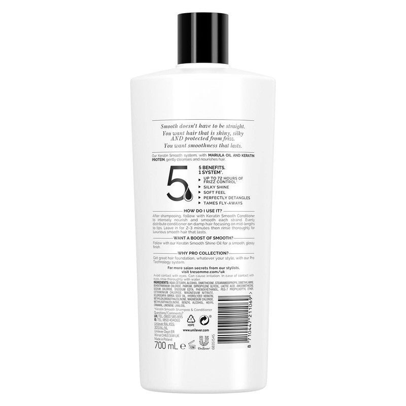 - Formulated with Keratin and Marula oil; you can enjoy up to 72 hours of frizz control with the Keratin Smooth hair conditioner