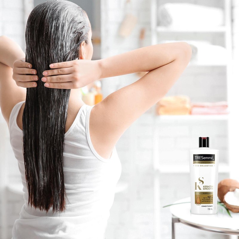 - Follow up with the TRESemmé Keratin Deep Smoothing Mask to smooth every strand and control frizzy hair