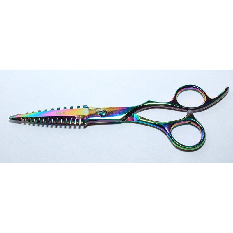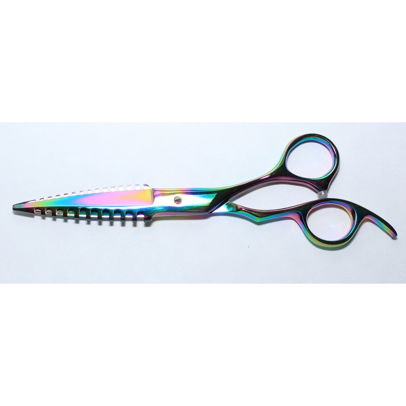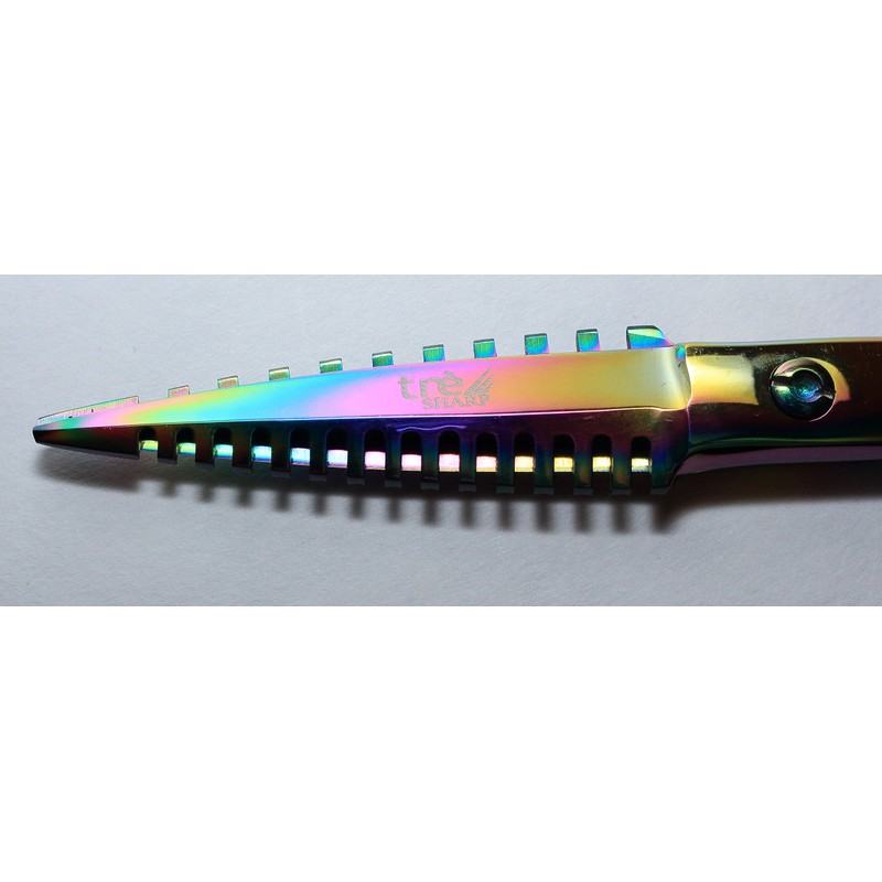 TreSharp 6" razor edge Scissors Titanium Coated with dual comb edges - Rainbow