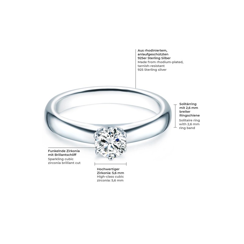 - Timeless beauty: Rhodium-plated sterling silver and a precisely faceted zirconia in brilliant cut combine to create a piece of jewellery for eternity.
