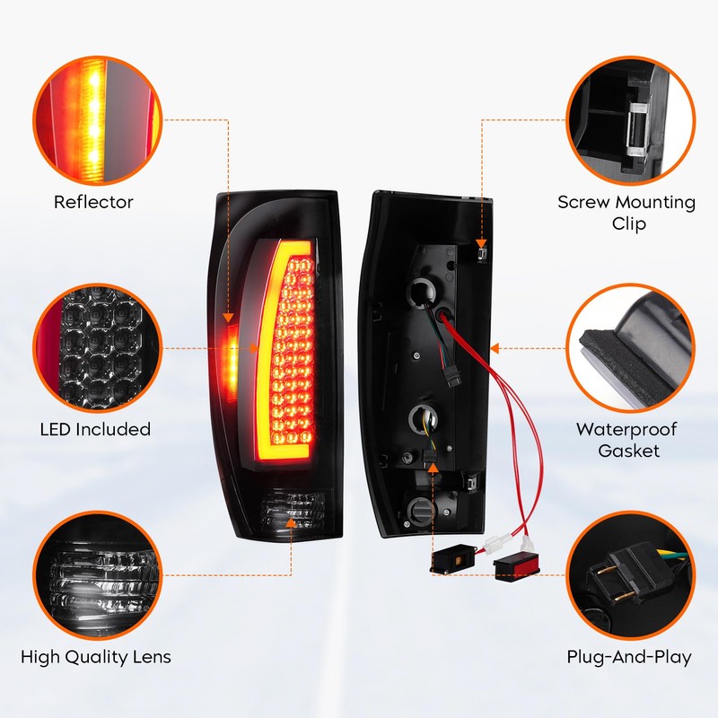 - All-in-one Taillight: LED running light, brake light, turn signal light, reverse light (backup light). You need to reuse your old backup bulb.
