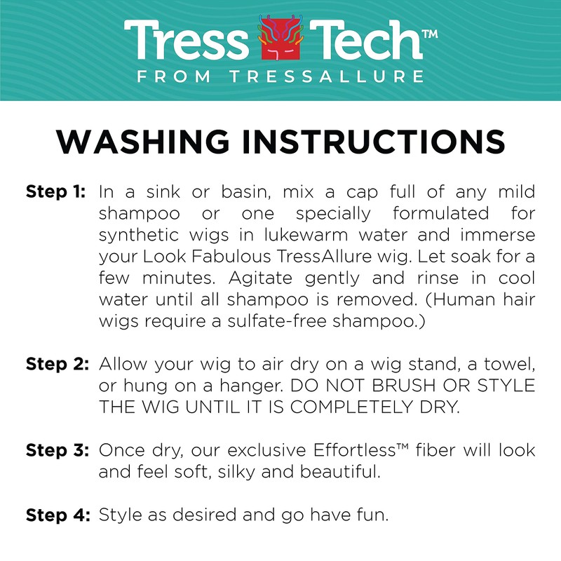 - WASHING INSTRUCTIONS: Step 1: In a sink or basin, mix a cap full of any mild, sulfate-free shampoo or one specially formulated for synthetic wigs in lukewarm water and immerse your wig. Let soak for a few minutes. Agitate gently and rinse in cool water until all shampoo is removed. Step 2: Allow your wig to air dry on a wig stand, a towel, or hung on a hanger. Do not brush/style until fully dry. Step 3: Style as desired.