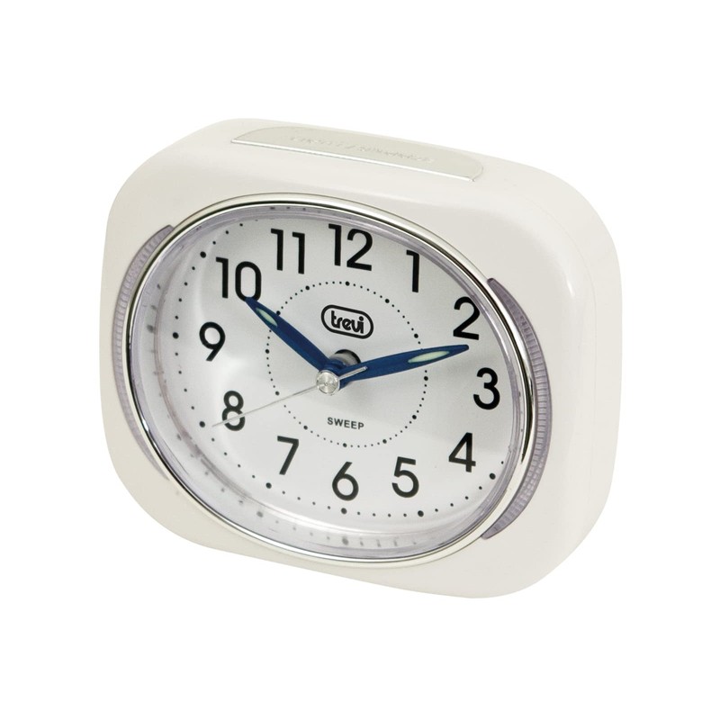 - Trevi Retro Bedside Table/Travel Alarm Clock with LED Backlight and Silent Sweep Second Hand, Plastic-p, Plastic, White, 10 x 3.6 x 8 cm