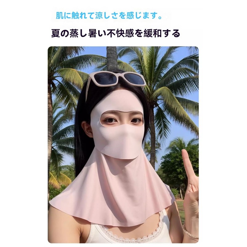 [TREWXS] 360°全顔カバー UVカット99%以上 接触冷感 日焼け防止フェイスカバー - 口元隠し開口デザイン|超通気性|首まで保護|やけーぬ |UVカットマスク|ひよけマスク|男女兼用 耳紐調節可能 通勤/通学/散歩/家事用 (ピンク)