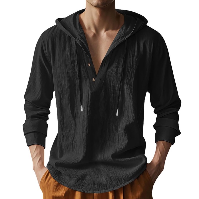 TRFIC Mens Cotton Linen Hoodies Long Sleeve Button Down Shirts Casual Hawaiian Beach Yoga Sweatshirts Black