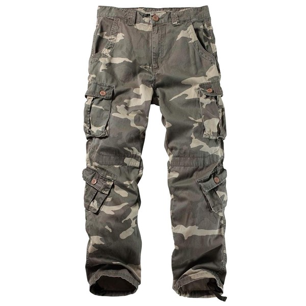 TRGPSG Men's Wild Cargo Pants, Camo Pants Cotton Casual Work Hiking Pants with 8 Pockets 5337 C34 Camo 34