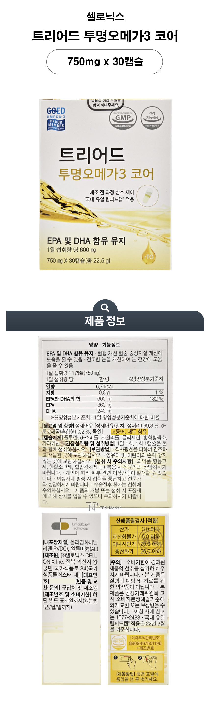 Triad Transparent Omega-3 Core 750mg x 30 Capsules / 트리어드 투명오메가3 코어 750mg x 30캡슐