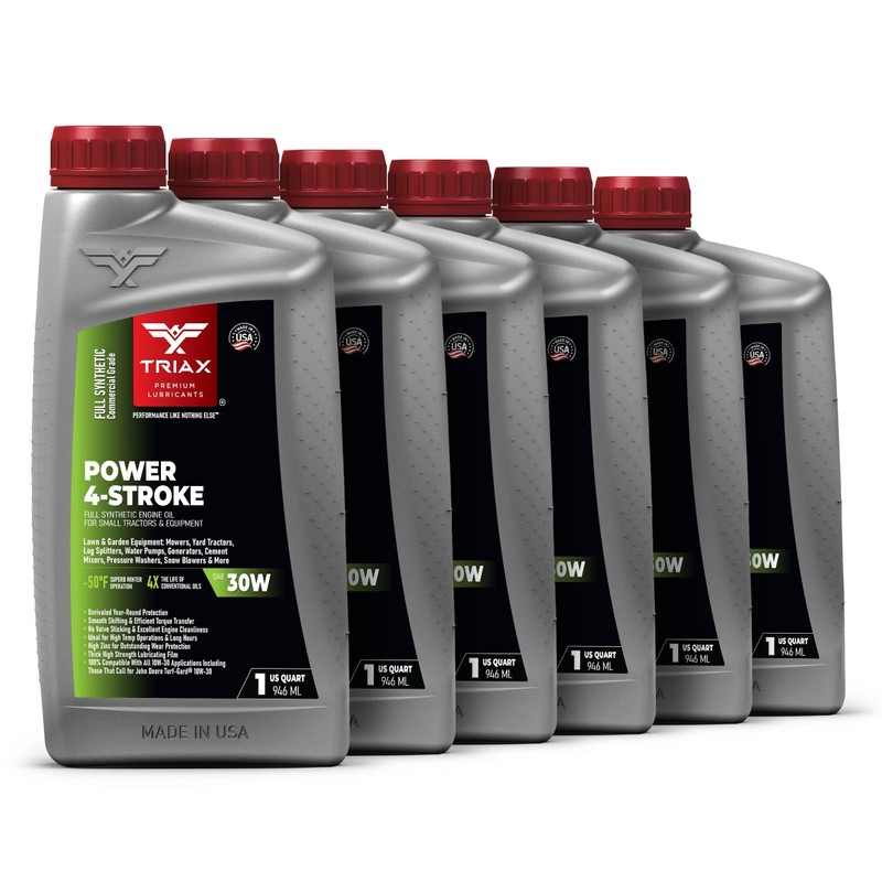 TRIAX Power 4-Stroke SAE 30W Full Synthetic 4 Cycle Small Engine Motor Oil | For Lawnmower, Generator, Tractor, Log Splitter, Snow Blower, Pressure Washer, Cement Mixer, and More (6 Quart Pack)