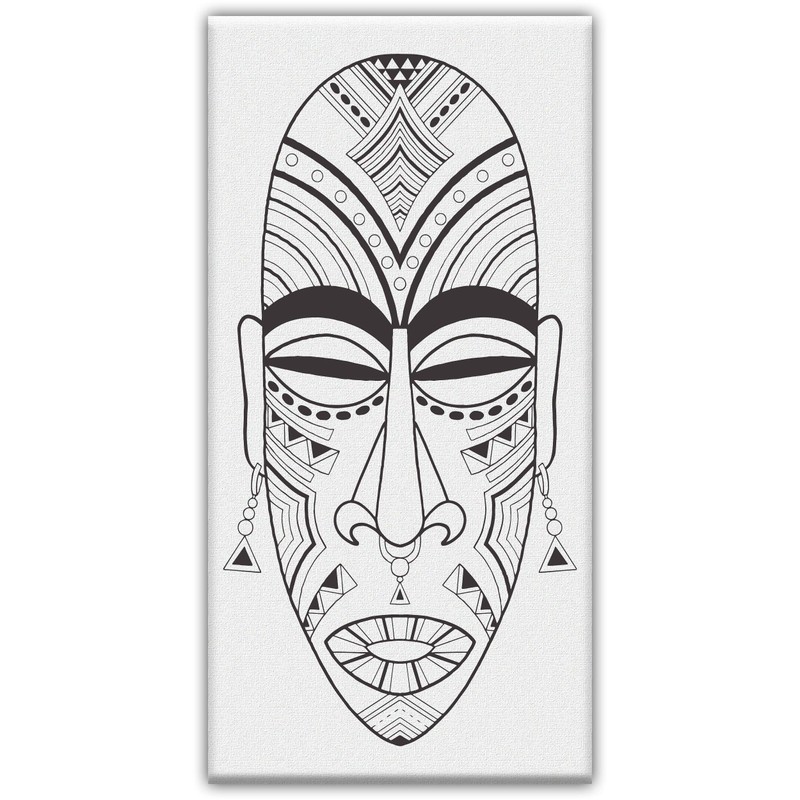Tribal African Mask - Coloring Canvas For Adults, Stretched primed canvas to color