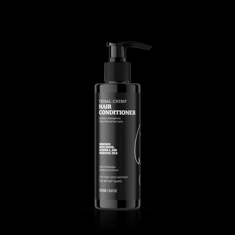Tribal Chimp Hair Conditioner 250ml is a premium hair care product designed to nourish and revitalize your hair. This conditioner is formulated with natural ingredients that work together to provide deep hydration and repair damaged hair. Its unique blend of essential oils and vitamins helps to strengthen hair strands, reduce frizz, and enhance shine. Suitable for all hair types, the Tribal Chimp Hair Conditioner 250ml ensures your hair looks and feels healthier with every use. What are the features and benefits of Tribal Chimp Hair Conditioner 250ml? Vitamin E: A blend of invigorating peppermint and nourishing vitamin E to rejuvenate and hydrate your hair, leaving it irresistibly soft, smooth, and lustrous. Avocado Oil, Wheat Oil, Olive Oil, and Costus oil: These precious oils penetrate each strand, providing intense hydration and replenishing your hair from root to tip. Say goodbye to dryness and hello to vibrant, revitalized locks. Biotin: Delivers hair-strengthening and nourishing benefits directly to the hair strands. Experience fewer knots, reduced breakage, and improved hair elasticity, allowing you to style with ease and confidence. Tea Tree Oil: Its antimicrobial properties help maintain a clean and refreshed scalp. Who is Tribal Chimp Hair Conditioner 250ml for? This product is perfect for anyone looking to improve the health and appearance of their hair, regardless of hair type.