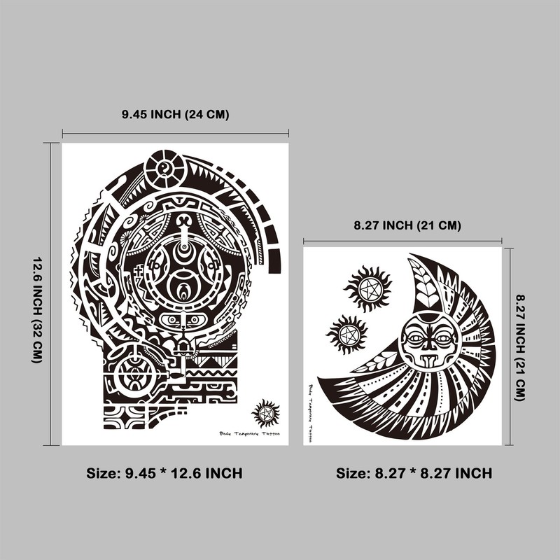 - LARGE TEMPORARY TATTOO - 2 sheets extra large similar to the rock shoulder temporary tattoos and 4 sheets large totem arm fake tattoo stickers. Your friends will be surprised you took a such big tattoo! Great fun for parties, special events also for testing how would a real tattoo look like.