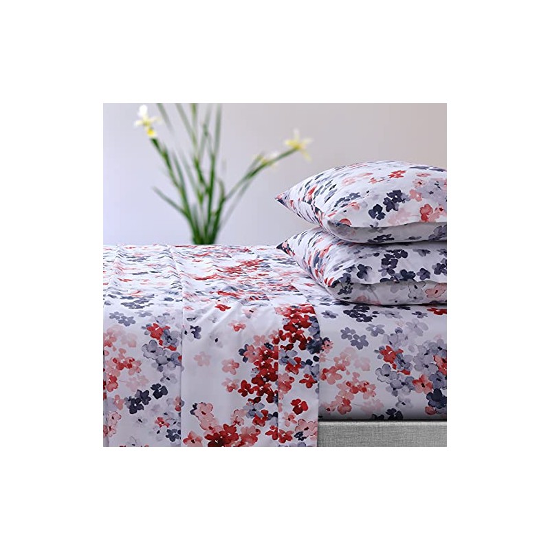 Tribeca Living Azores Home Juliette Printed Deep Pocket Sheet Set Red Twin, JUL110SHETWRE