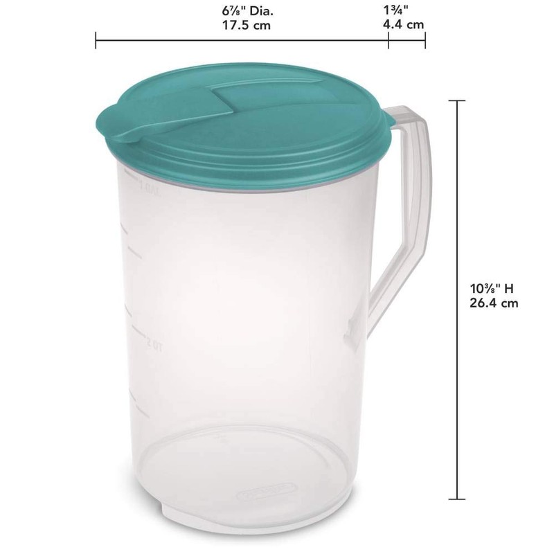 - Seguro para beber y fácil de limpiar: las jarras están hechas en los Estados Unidos con plástico de alta calidad sin BPA y sin ftalatos. Y es fácil de limpiar, apto para lavaplatos y congelador. Las dimensiones totales de este producto son 8 5/8 pulgadas de largo x 6 7/8 pulgadas de ancho x 10 3/8 pulgadas de alto.