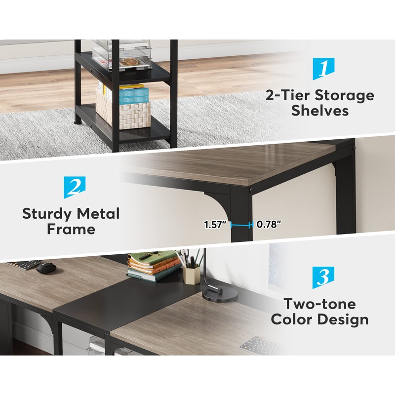 - 【Functional with Practical】: This home office desk for 2 people is a combination of two desks and storage shelves, constructing a comfortable at-home workstation; It also could work as a computer desk, writing desk, office desk, training table, gaming desk, meeting table, etc just like you want.
