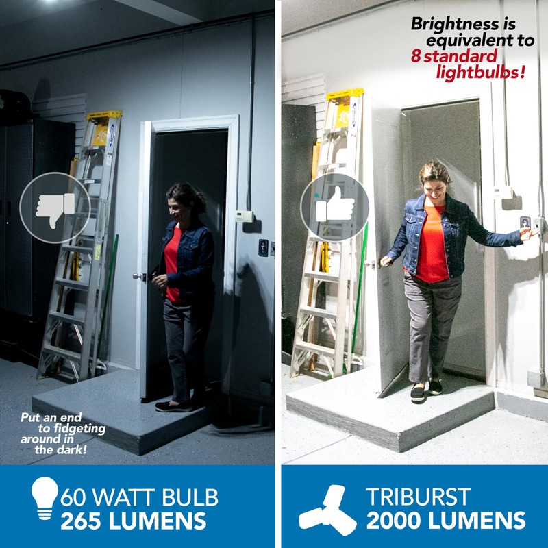 Triburst by Bell+Howell, ASON TV 2000 Lumens / 6500 Kelvin Indoor Lights, Ultra Bright Lighting with 144 LED Bulbs and Multi-Directional Triple Panel Bedroom, Garage, Ceiling Light