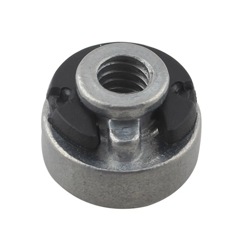 Features on a 1/4 in. - 20 die cast nut with nylon retaining washer