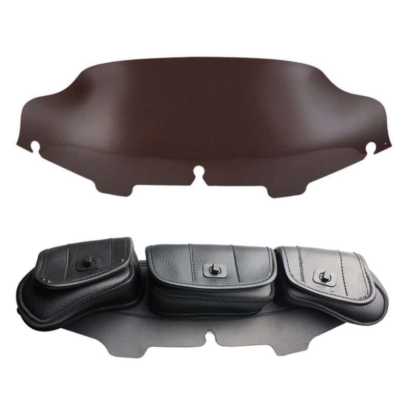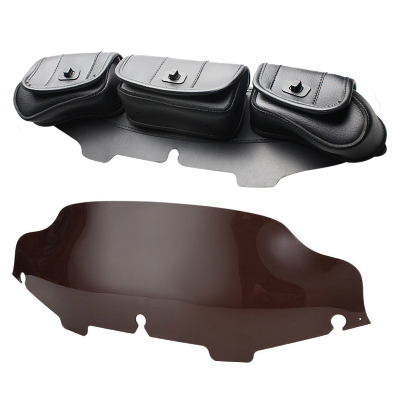 Trichtu Mount 3 Pockets Saddle Windshield Bag+6"Smoke Wave Windscreen For Harley Touring 96-13