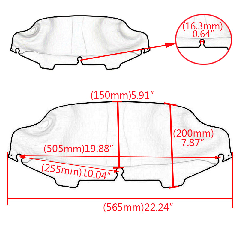 Windshield Height: 6"(measure from the center of the middle bolt)