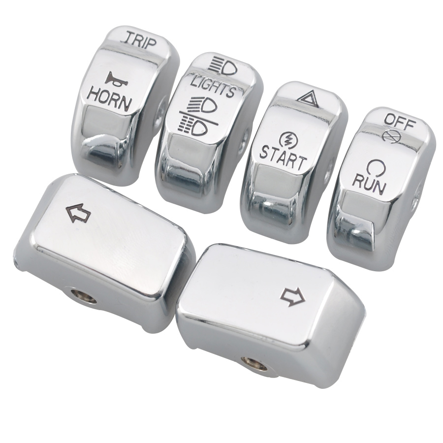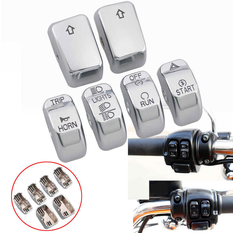 Trichtu Mount 6Pcs Chrome Hand Control Button Switch Cap For Harley Dyna Softail Sportster XL