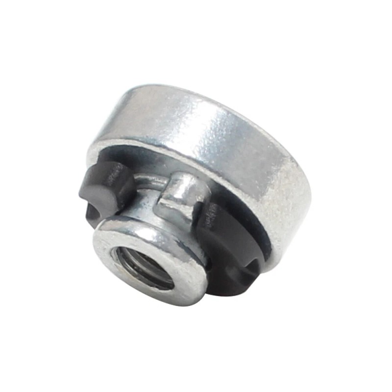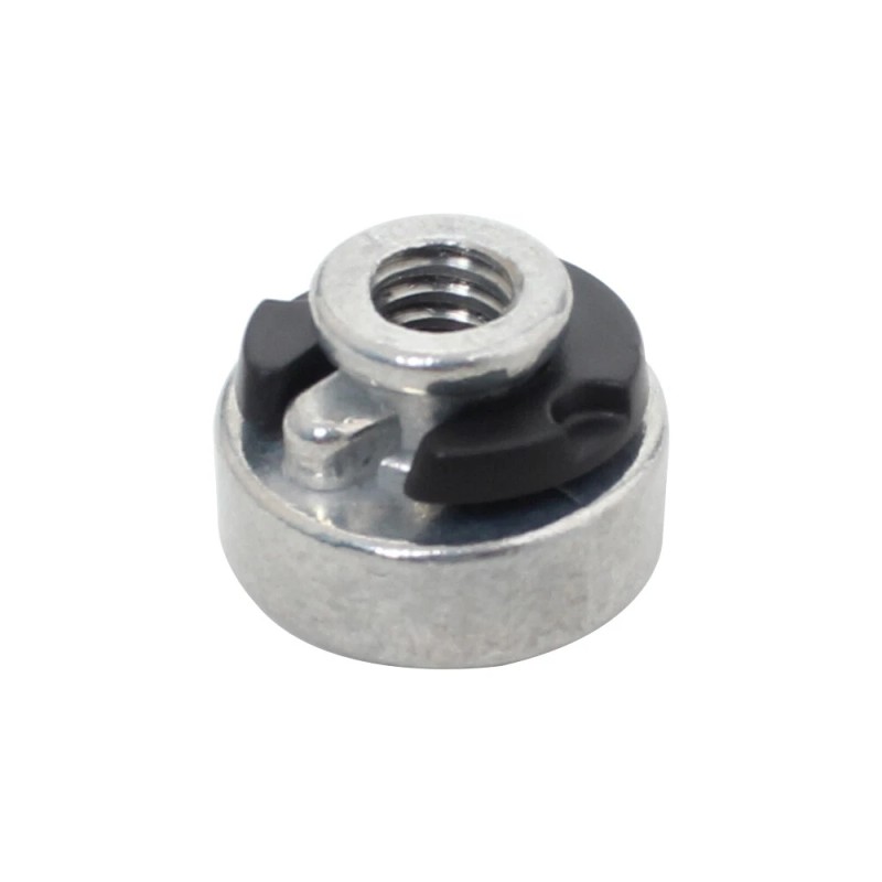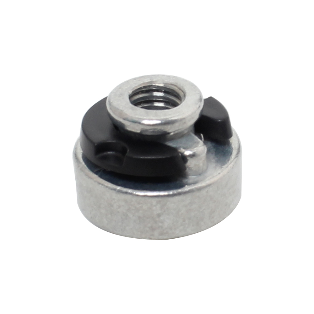 Features on a 1/4 in. - 20 die cast nut with nylon retaining washer