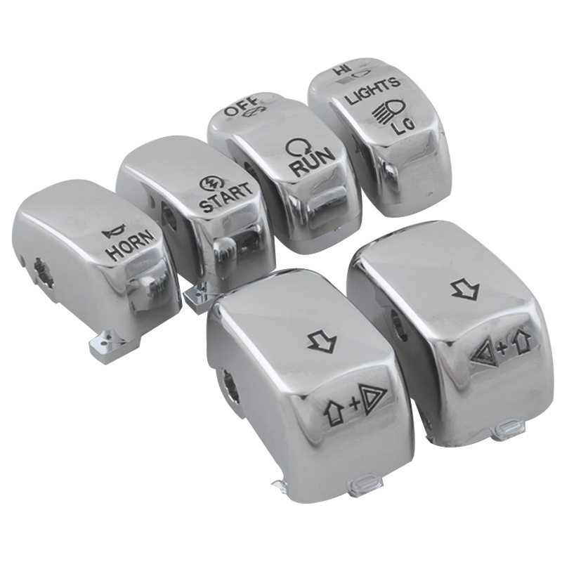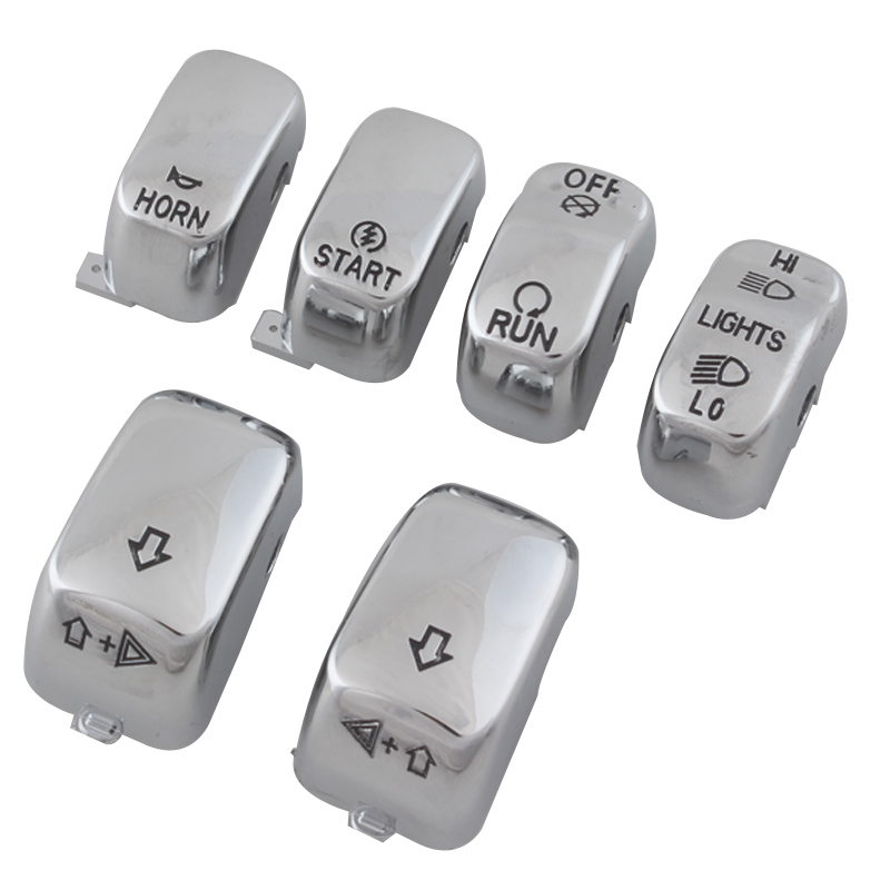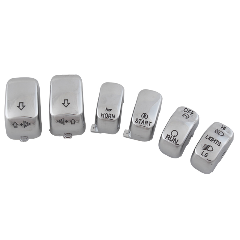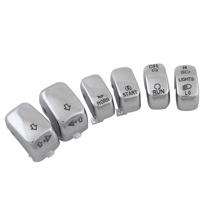Kit contains a complete set of chrome/black switch caps for the left and right handlebar switches