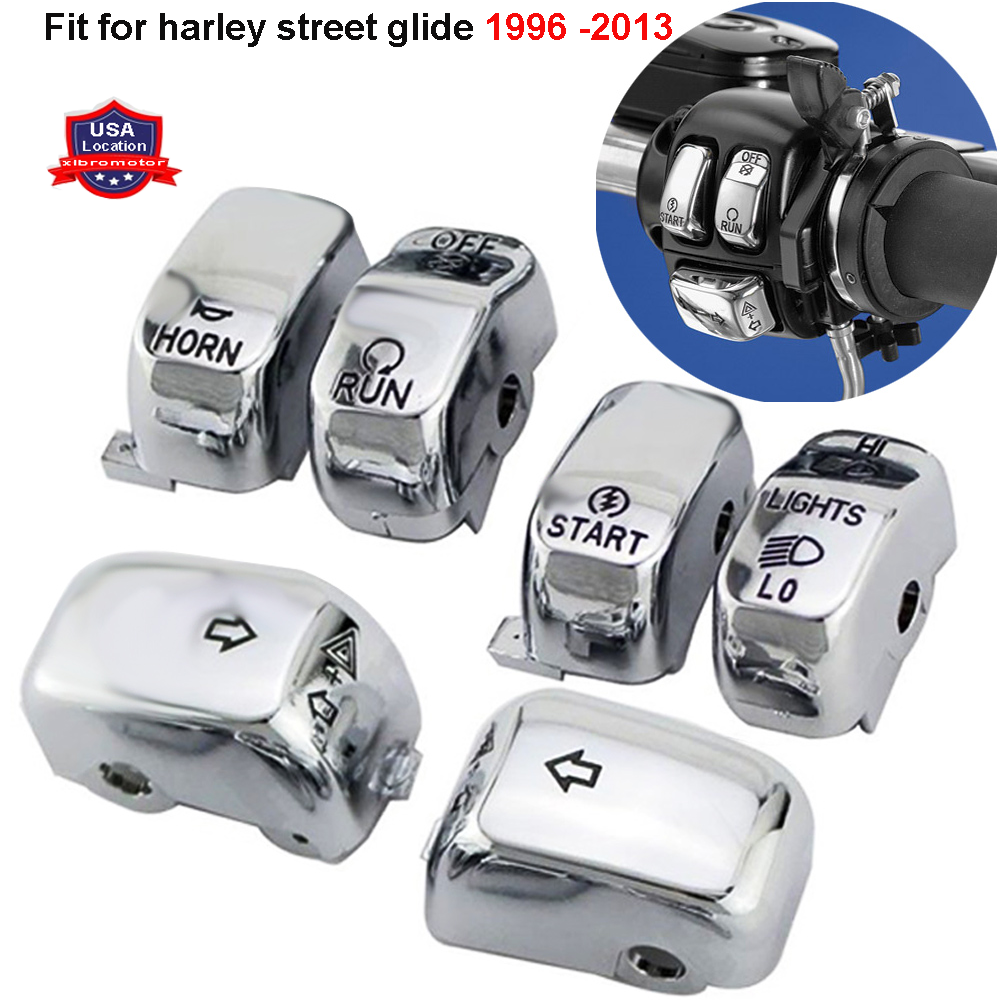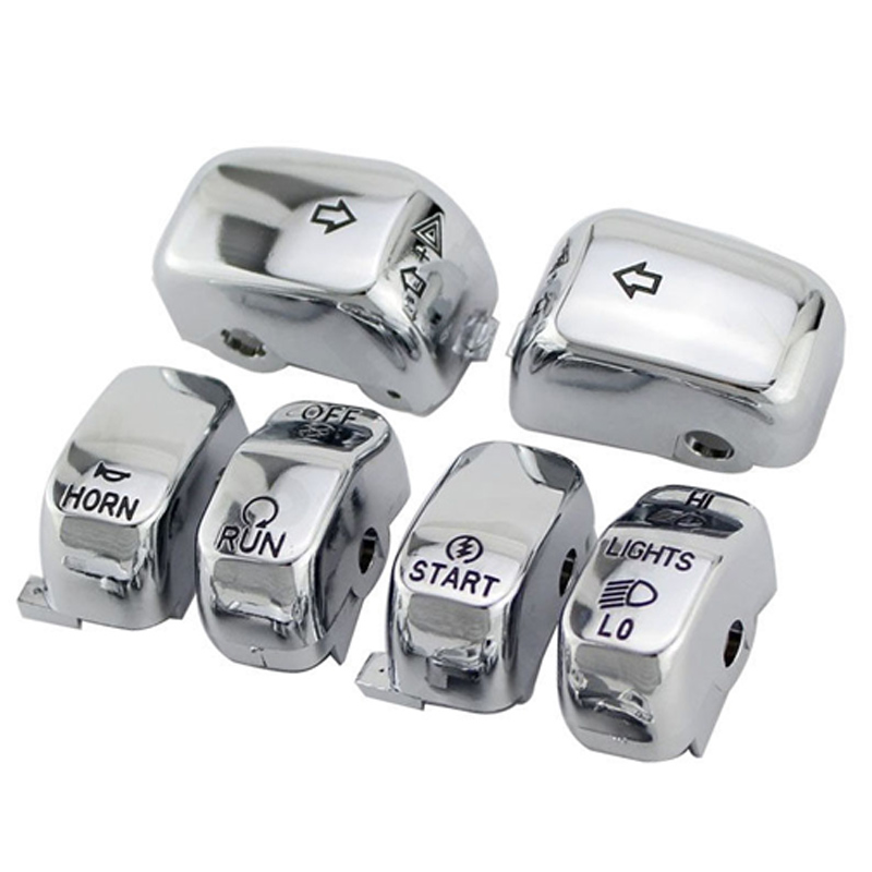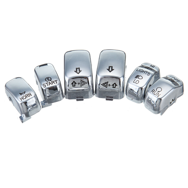 Trichtu Mount Chrome 6Pcs Hand Control Switch Button Cover Caps For Harley Softail Dyna 96-13