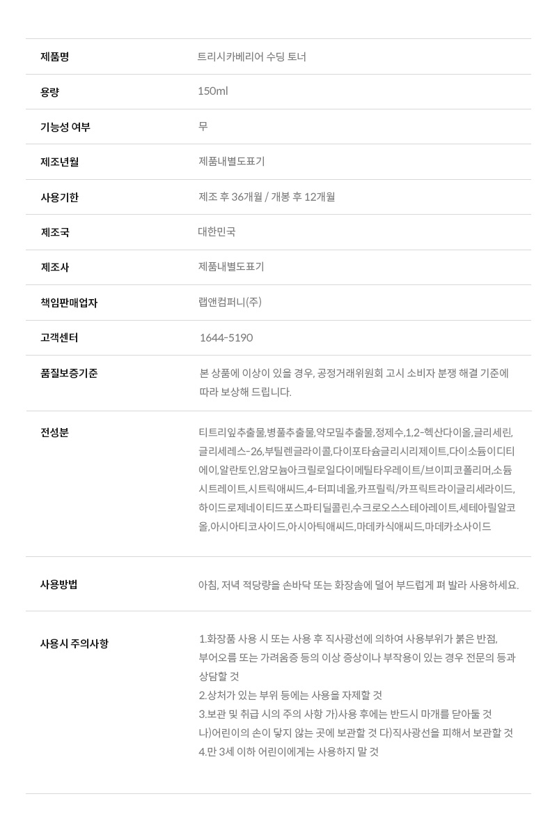 Tricica Barrier Soothing Toner 150ml / 트리시카베리어 수딩 토너 150ml