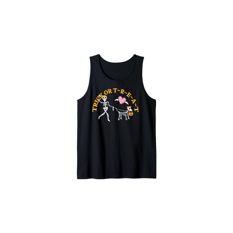 Trick or t-r-e-a-t Skeleton With Dog Funny Halloween Tank Top