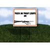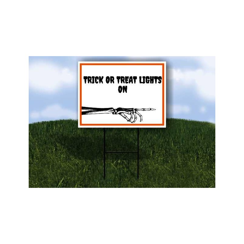 TRICK OR TREAT LIGHTS ON Halloween Skeleton Right Arrow Single Sided 18x24 in Yard Road Sign w/Stand