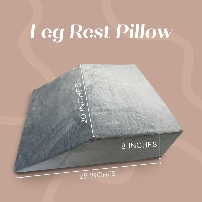 Trickonometry Leg Elevation Pillow with Memory Foam and Washable Velvet Removable Cover for Sleeping, Sciatica, Back Pain, Leg/Knee Surgery Pain Relief, Foot/Ankle Injury, and Circulation (Grey)