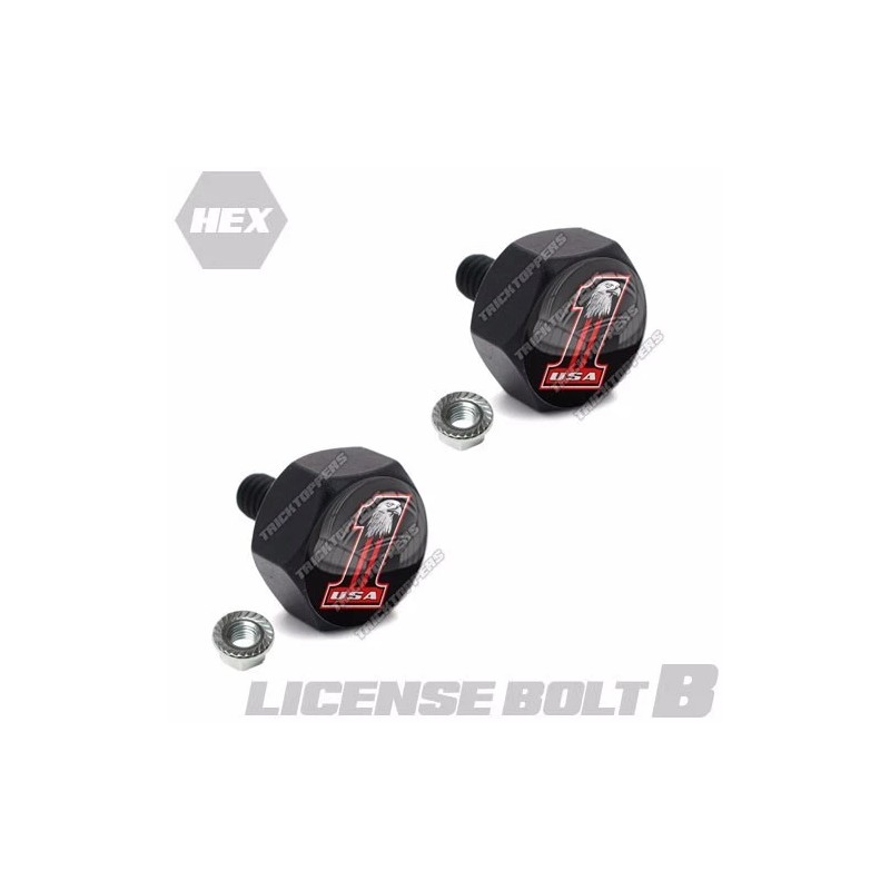 TrickToppers Custom Parts 2 Custom Hex Black Billet License Plate Frame Fastener Tag Bolts USA NO 1 EAGLE