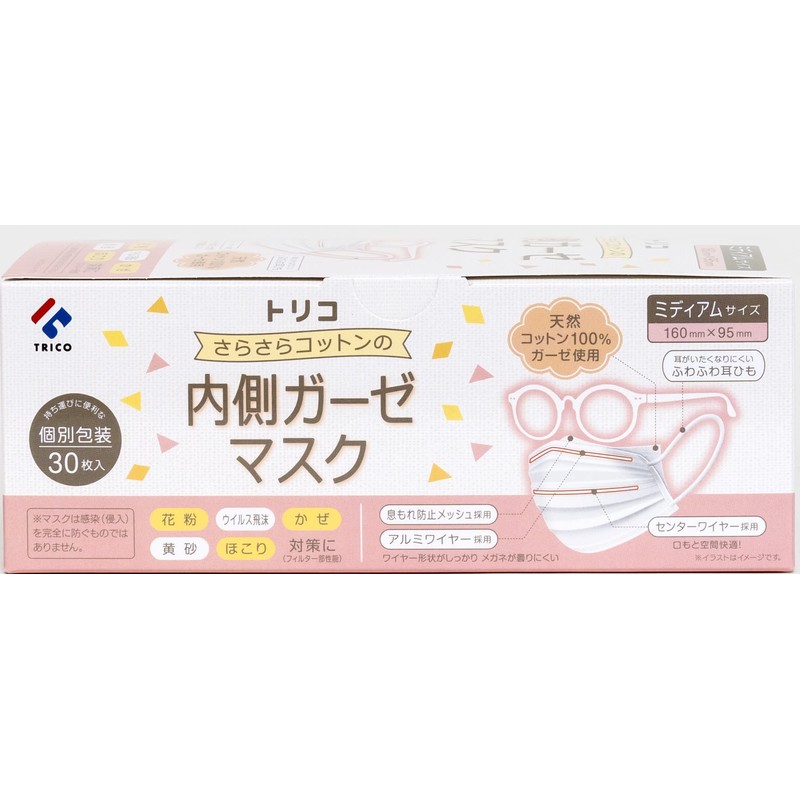 TRICO Smooth Cotton Inner Gauze Mask, Medium Size, 30 Pieces