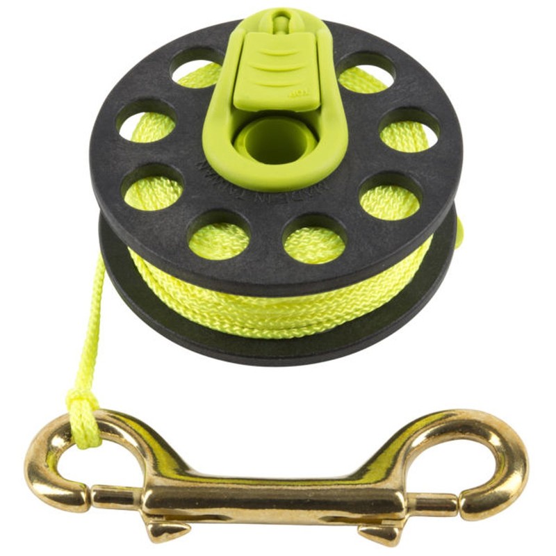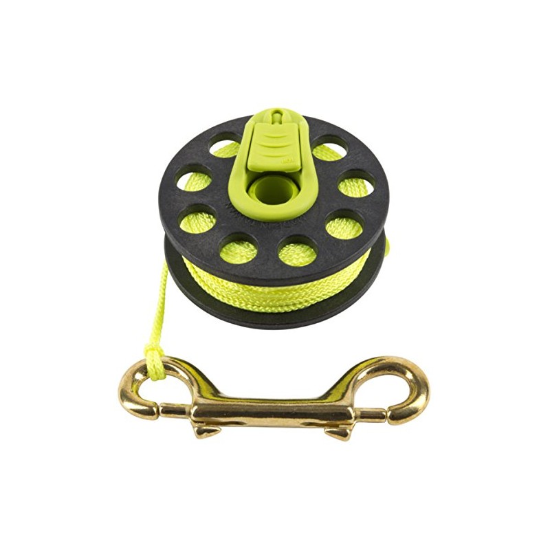 Trident Finger Spool with Handle - Folding Handle Finger Scuba Diving Reel with Fluorescent Yellow Line, 160'